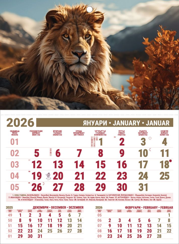 Начало Продукти за реклама Стенни и настолни календари Стенен работен календар РКМД, 1-секц., бордо/бронз