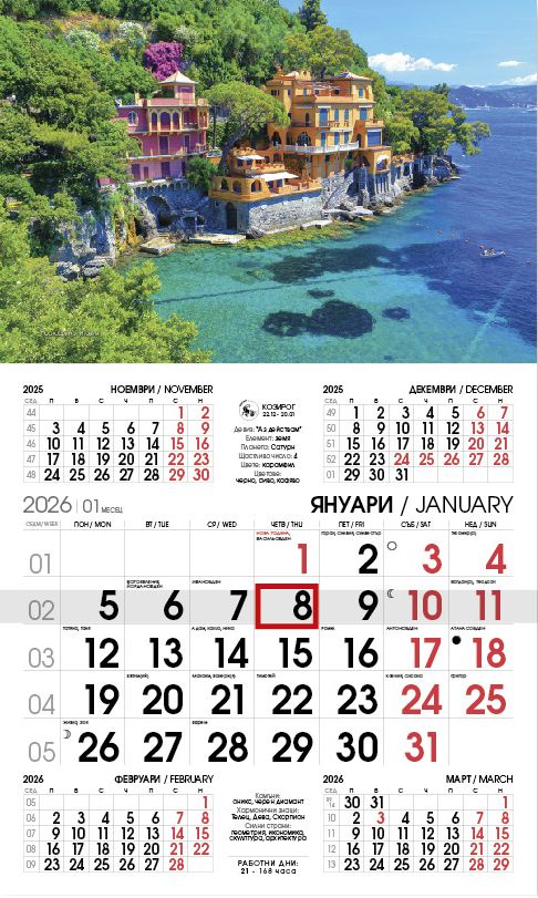 Начало Продукти за реклама Стенни и настолни календари Стенен работен календар РК 5 с цветна глава, асорти