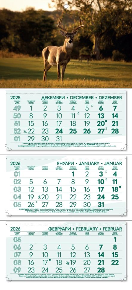Начало Продукти за реклама Стенни и настолни календари Стенен работен календар РК 103, 3 секции, зелен