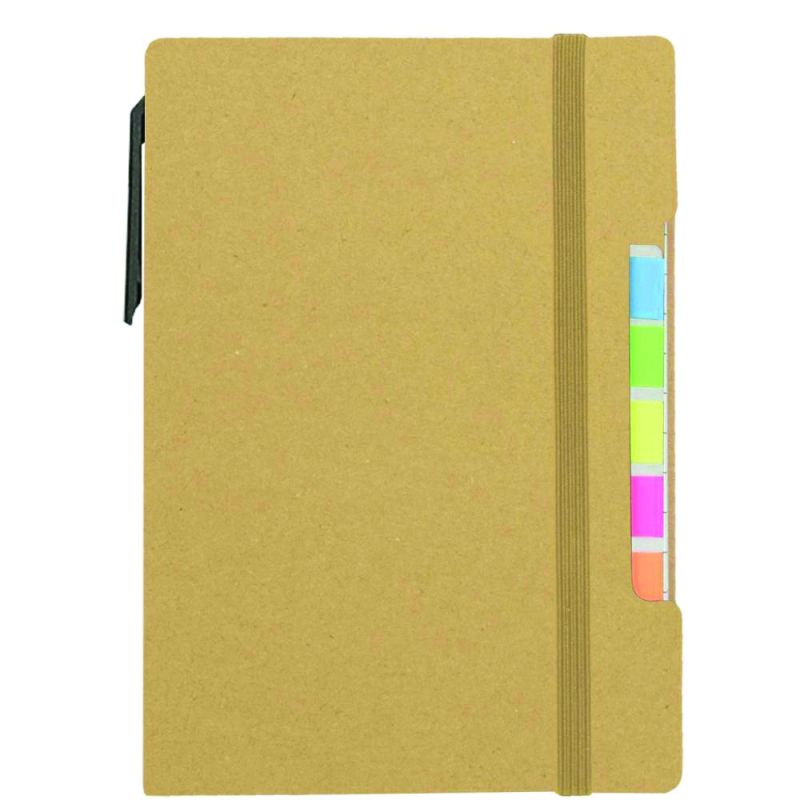 Еко бележник с лепящи листчета и химикалка, НАТУРАЛЕН