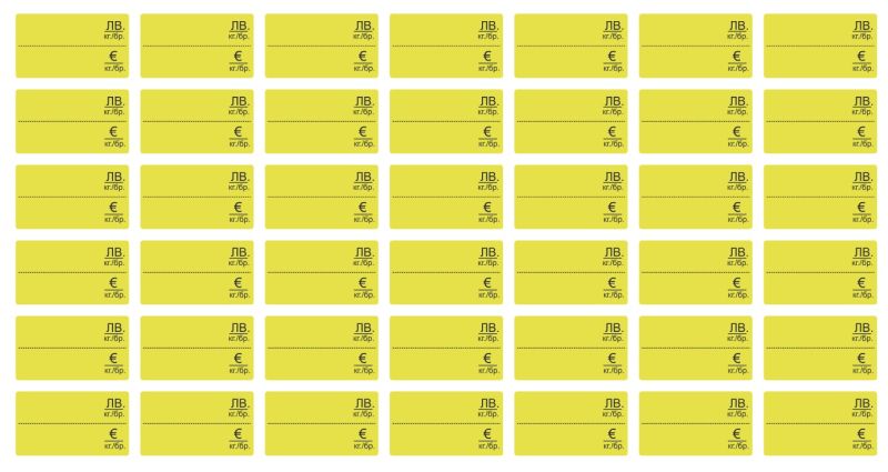 * Етикети за двувалутно обозначаване на продажни цени, в изпълнение на законовите разпоредби и изисквания * 17 х 30 мм * 42 броя на лист * 10 листа в опаковка