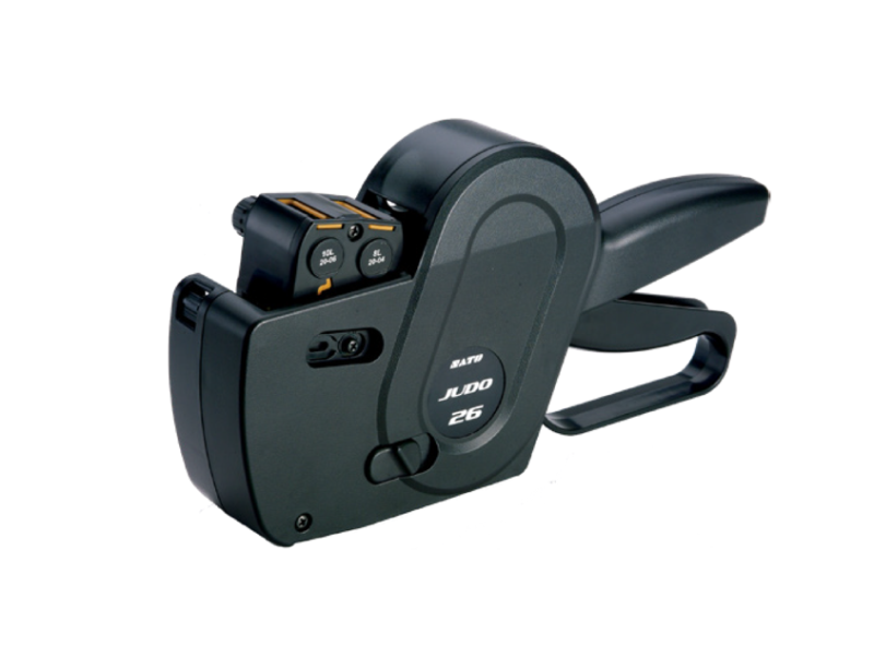 Двуредови етикиращи клещи SATO JUDO 26 Подходящи за маркиране на цена, дата на производсво, срок на годност, промоции, промишлено маркиране (маркиране по време на производствения процес). Характеристики:- Стабилна конструкция- Прецизен отпечатък Лесна смяна на консумативите - ролката с етикети и тампон. Двуредови – печат на 10+10 символа за етикет, еднаква височина на шрифта на двата реда. Работят с етикети с размер 26х16 mm