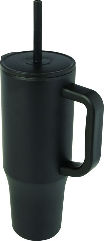 Чаша с капак и сламка, двустенна, 900ml, ЧЕРЕН