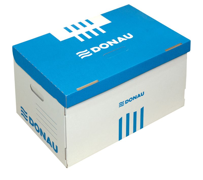 Архив.кашон Donau бял картон 522х351х305 син надп.