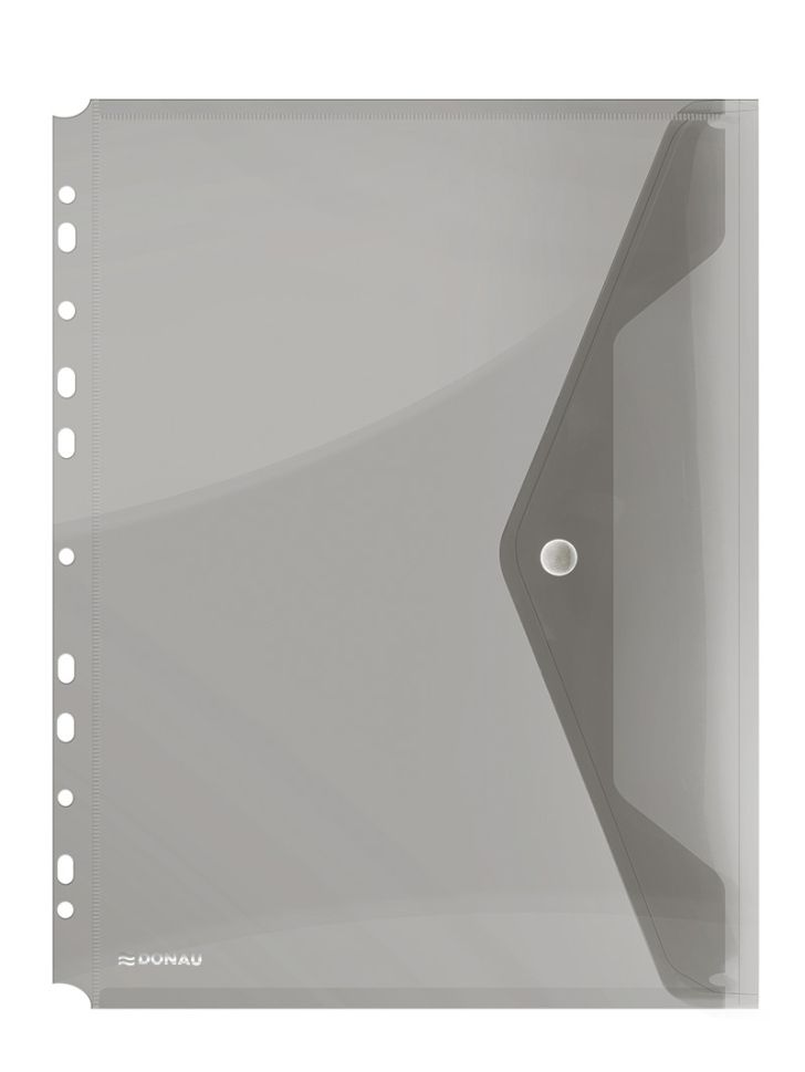 Начало Класификация, архивиране Папки, пластмасови и картонени Папка с копче Donau и европерфорация, опушена