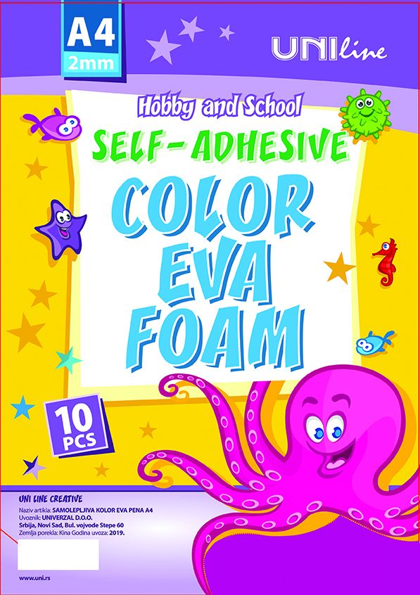 Листа Uniline от EVA пяна, А4, опаковка 10,самоз, розови