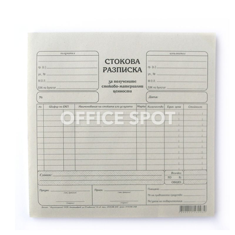 Стокова разписка, 11 реда, вестник, 2/3 А4, 100 листа