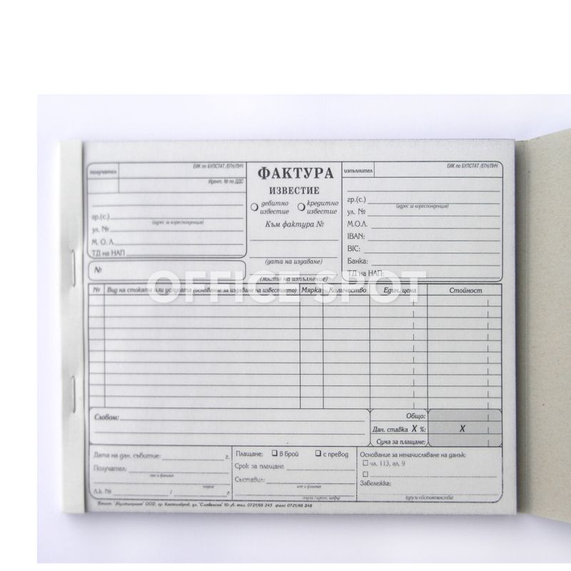 Фактура А5 10 реда химиз. 100 листа, IBAN