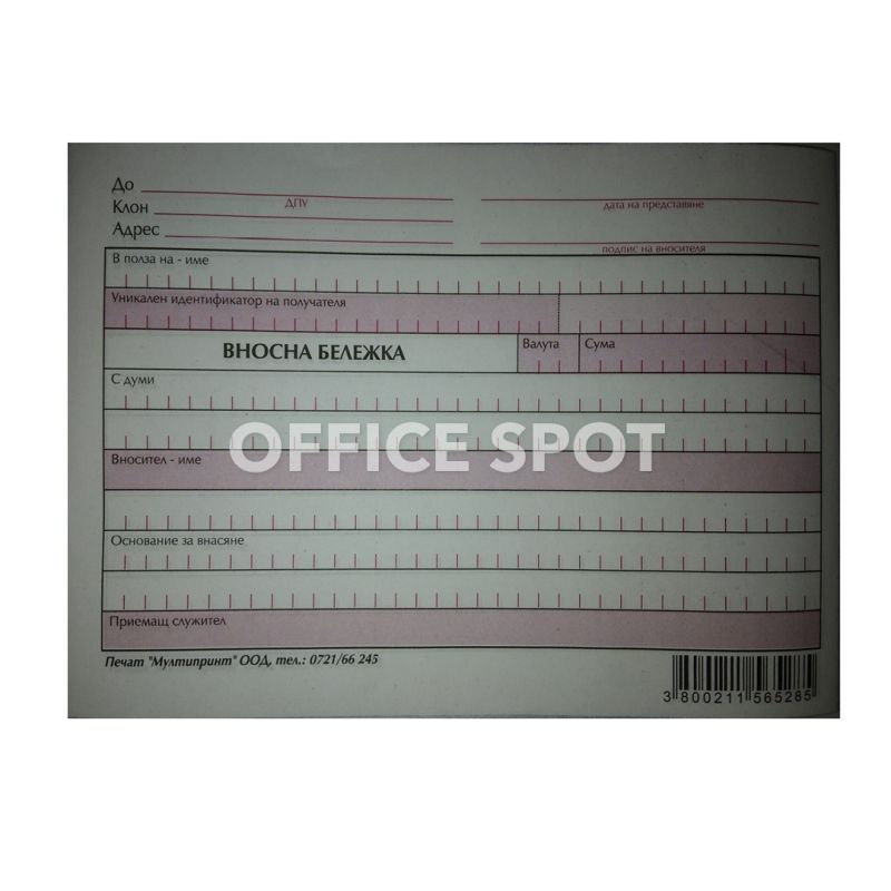 Вносна бележка химизирана, 100 листа, IBAN Актуална бланка, ТИРАЖ 2024г