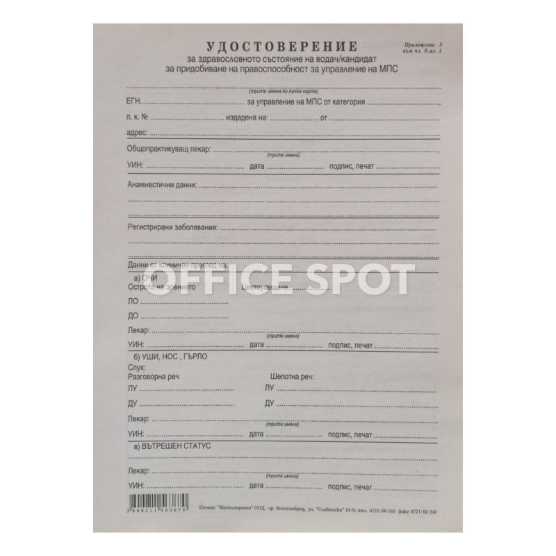 Начало Хартиени изделия Формуляри Медицинско за шофьор, А5, 1 лист