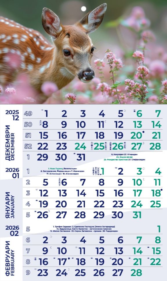 Начало Продукти за реклама Стенни и настолни календари Стенен работен календар РК 311, 1 секция, син/зелен