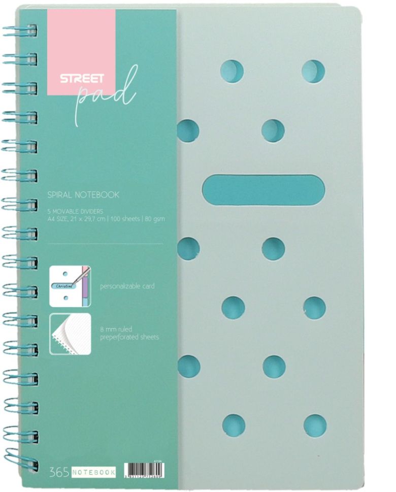 Спирала тип гребен. Микроперфорация. PP корица 0.7 mm. Варианти зелен и розов.
