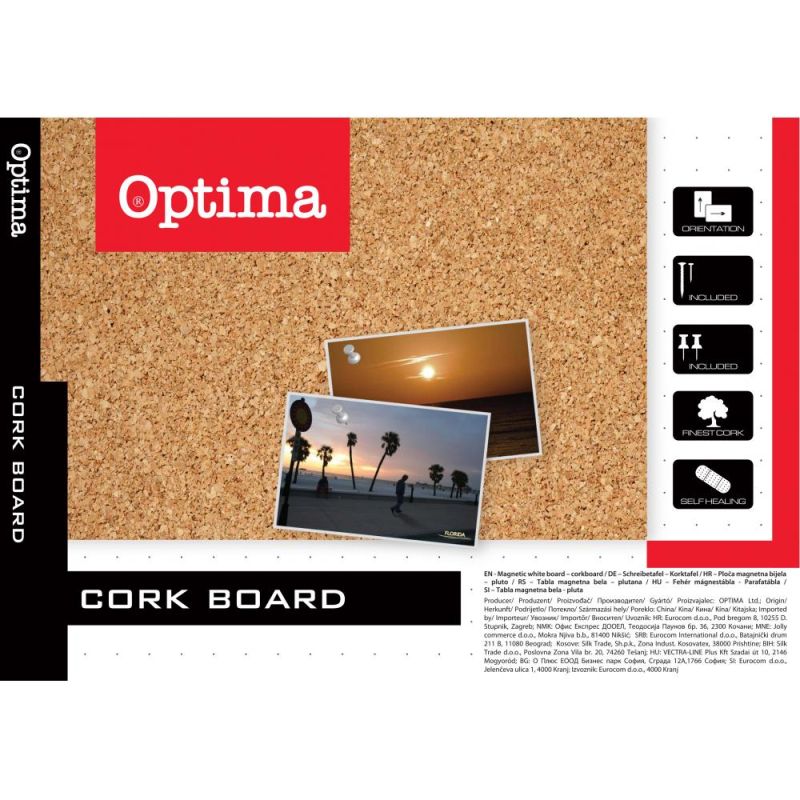 Дъска Optima, коркова с дървена рамка, 60x90 cm