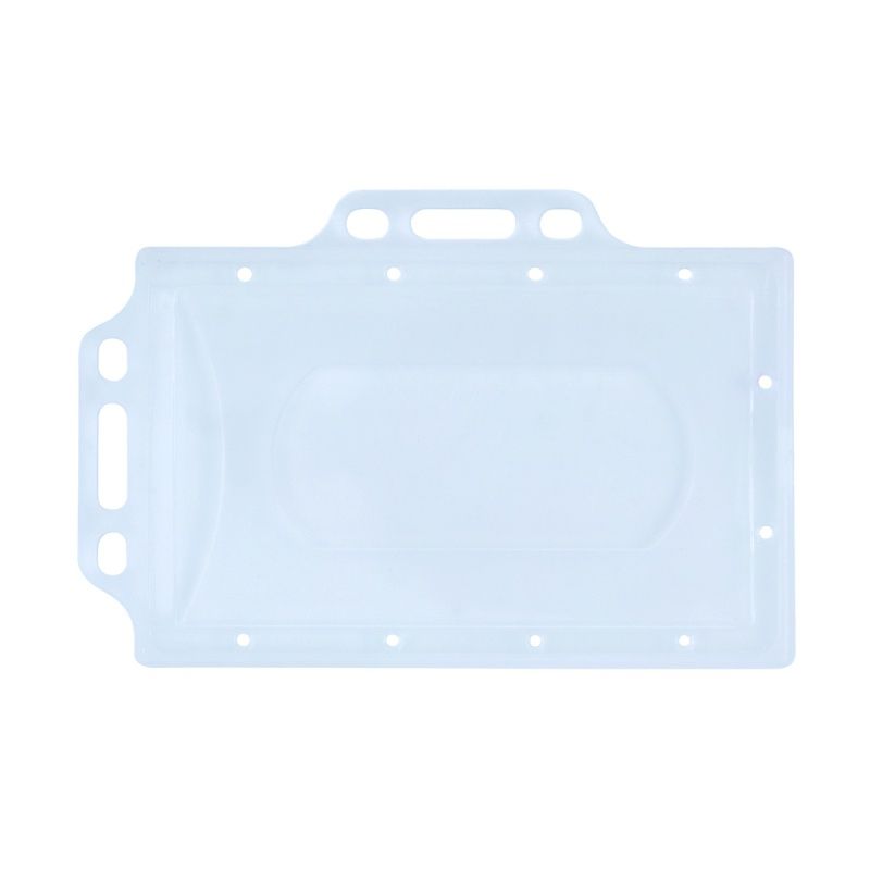 С отвор за пръсти за лесно изваждане на карти, визитки Външен размер: 92 x 59 мм Вътрешен размер: 90 x 56 мм Изработен от гъвкав полипропилен, устойчив на счупване Перфектно защитава магнитни карти, карти за достъп и лични карти Вертикален и хоризонтален държач Цвят: прозрачен