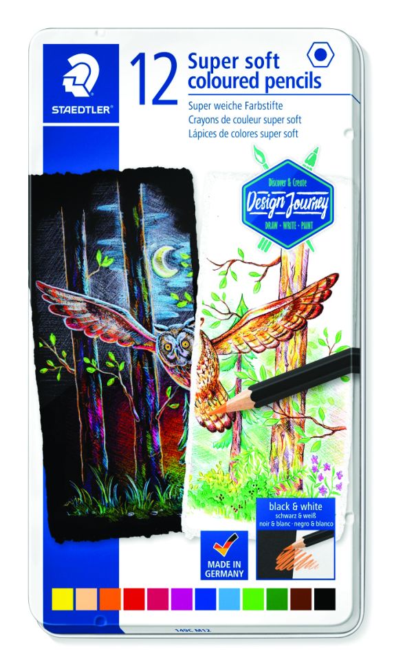 Цветни моливи Staedtler Design Journey super soft, 12 цвята, метална кутия