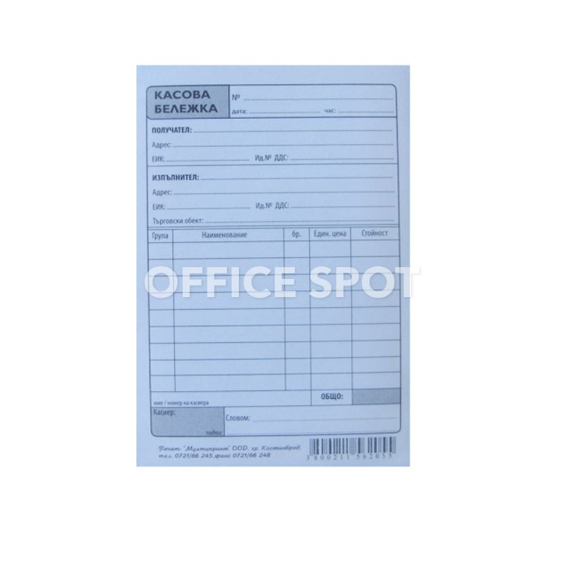 Касова бележка, 1/4 А4, химизирана, 100 листа