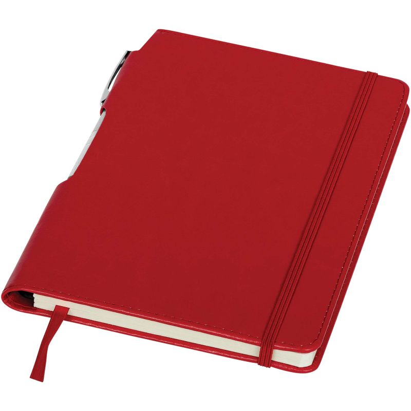 * размери 15.4 x 21 cm* с ластик и лента за отбелязване * твърда PU корица* 80 листа, линирани, тониран офсет* офсет 70 g/m2* пластмасова сребриста химикалка