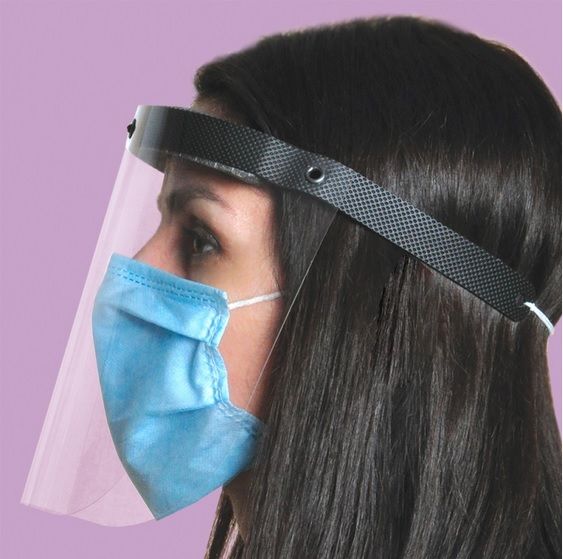 универсален размер покрива цялото лице предпазва от аерозоли почиства се и се дезинфектира лесно с меко уплътнение на челото за многократна употреба