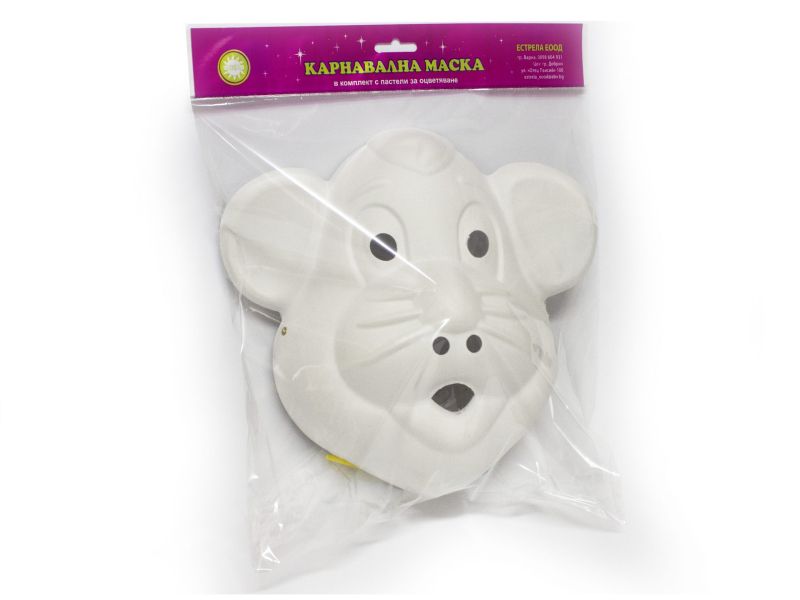Съдържа: маска от твърд картон с ластик за закрепване към главата, палитра с 6 цвята и четка.
